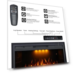 - 23" Fireplace Insert with 4-level flame control infrared quartz heater