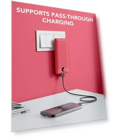 - Dust/Water Resistant Charging Brick — Portable power bank rated IP67 for dust and water resistance when port cover is securely closed