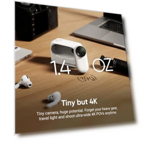 - 1.4OZ (39G) & THUMB SIZED- Unlock limitless creativity with Insta360 GO 3S, a tiny, powerful 4K camera weighing only 1.4oz (39g). High-quality footage in a tiny but mighty package.